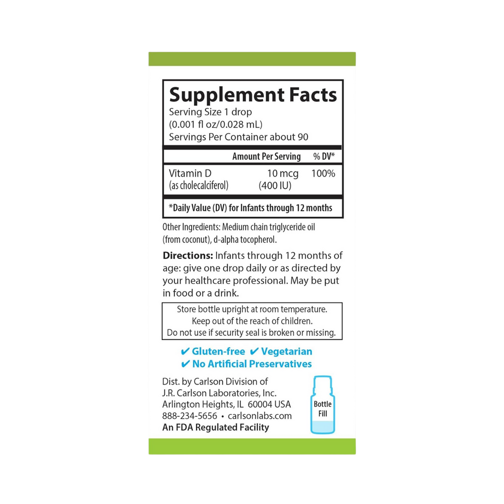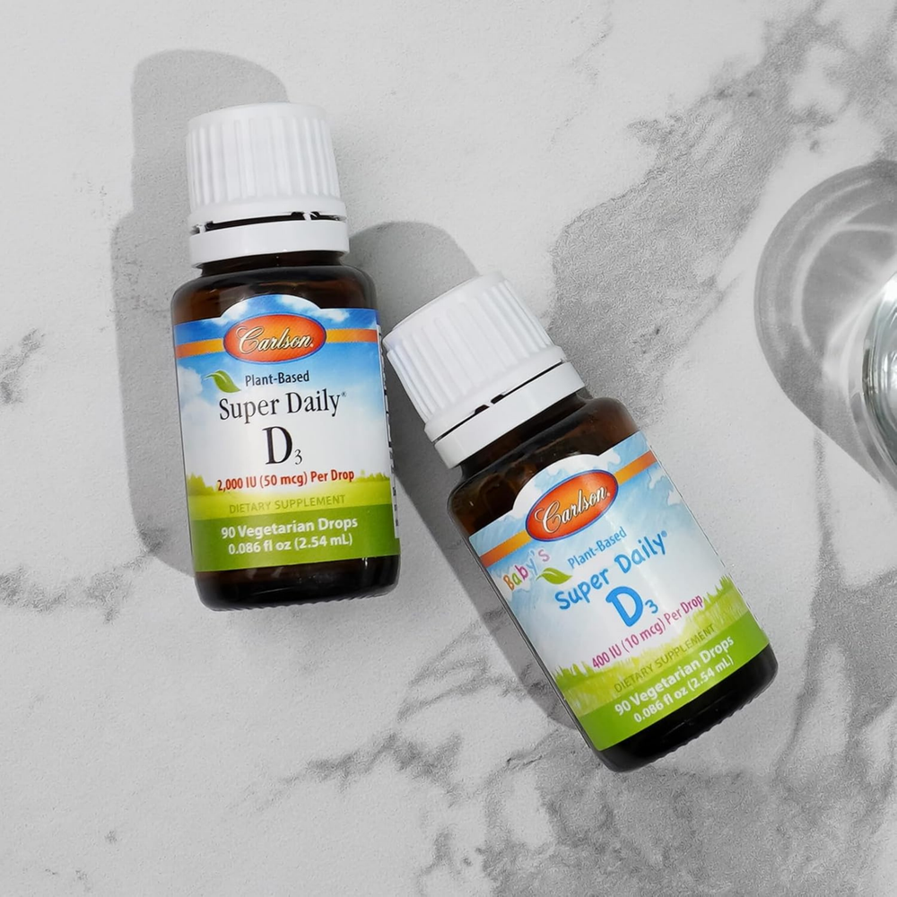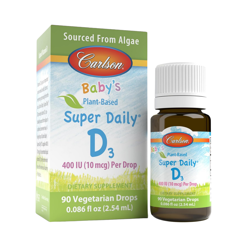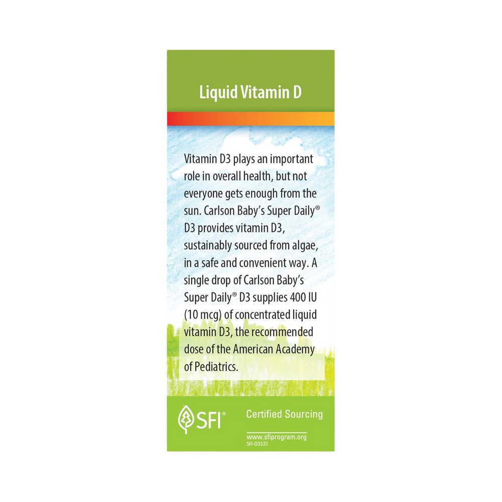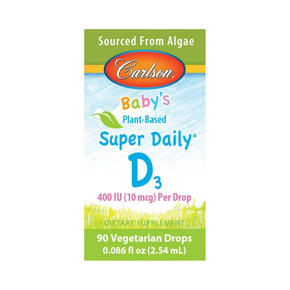 Carlson, Baby's Plant-Based Super Daily D3, Baby Vegetarian Liquid Vitamin D Drops, 90 Drops