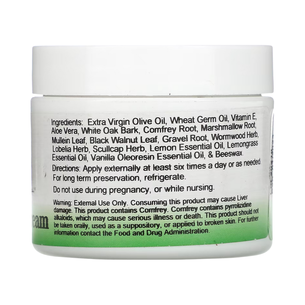 External use only. Consuming this product may cause Liver damage. This product contains comfrey. Comfrey contains pyrrolizidine alkaloids which may cause serious illness or death. This product should not be taken orally used as a suppository or applied to broken skin. For further information contact the Food & Drug Administration.