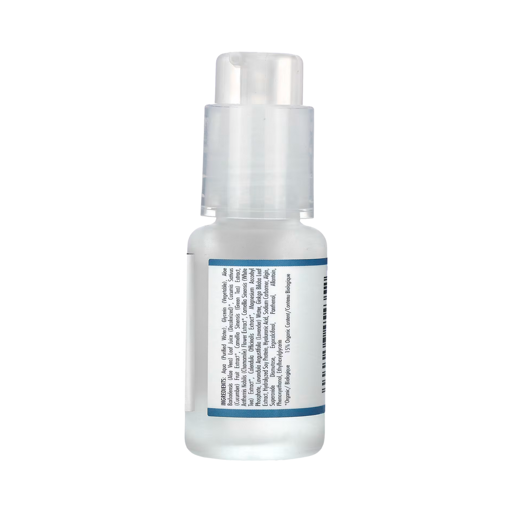 Aqua (purified water), glycerin (vegetable), aloe barbadensis (aloe vera) leaf juice (decolorized) *, cucumis sativus (cucumber) fruit extract *, camellia sinensis (green tea) extract, anthemis nobilis (chamomile) flower extract *, camellia sinensis (white tea) extract *, calendula officinalis extract *, magnesium ascorbyl phosphate, lavandula angustifolia (lavender) water, ginkgo biloba leaf extract, hydrolyzed soy protein, hyaluronic acid, sodium carbomer, algin, superoxide dismutase, ergocalciferol, panthenol, allantoin, phenoxyethanol, ethylhexylglycerin.