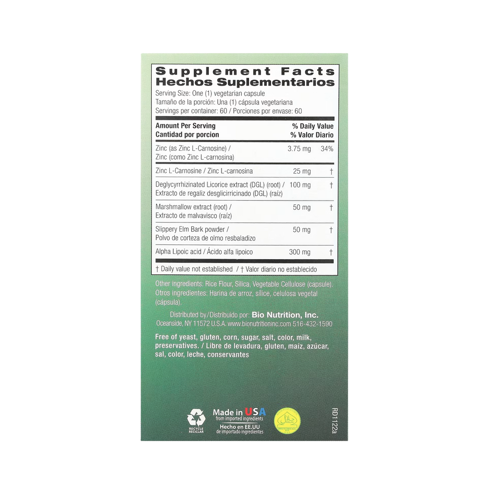 Bio Nutrition's Stomach Wellness is formulated to support a healthy gastrointestinal tract by maintaining a healthy mucus barrier in the intestines and allowing the body to absorb nutrients more readily.