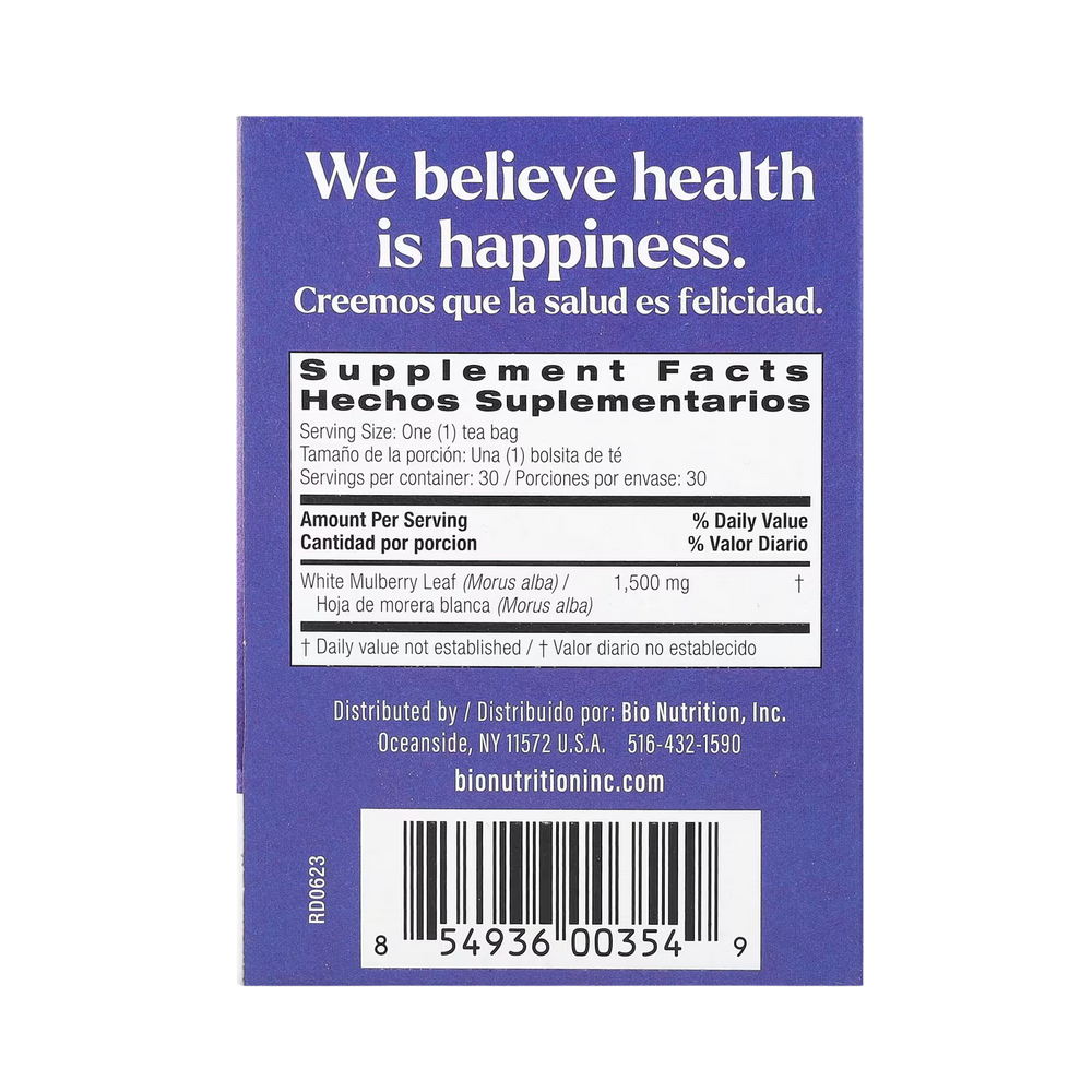 Bio Nutrition selects the finest White Mulberry leaves for the production of this tea. White Mulberry Leaf has been traditionally used to support healthy blood sugar levels already in normal range.