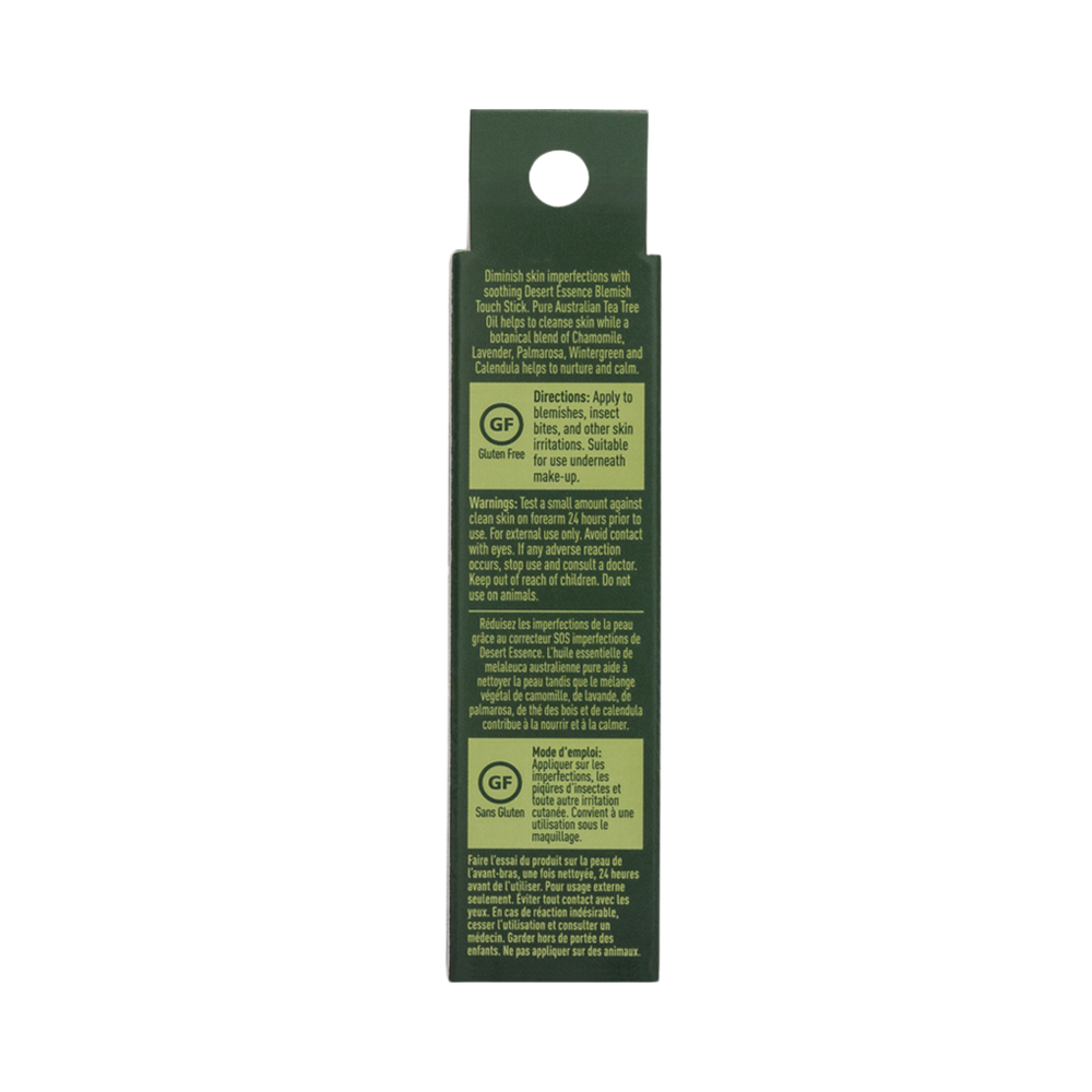 Skin-clearing tea tree oil blemish touch stick solution formulated with pure Australian Tea Tree Oil, Chamomile and Lavender. Cleansing and soothing formula helps diminish blemishes and other skin imperfections.