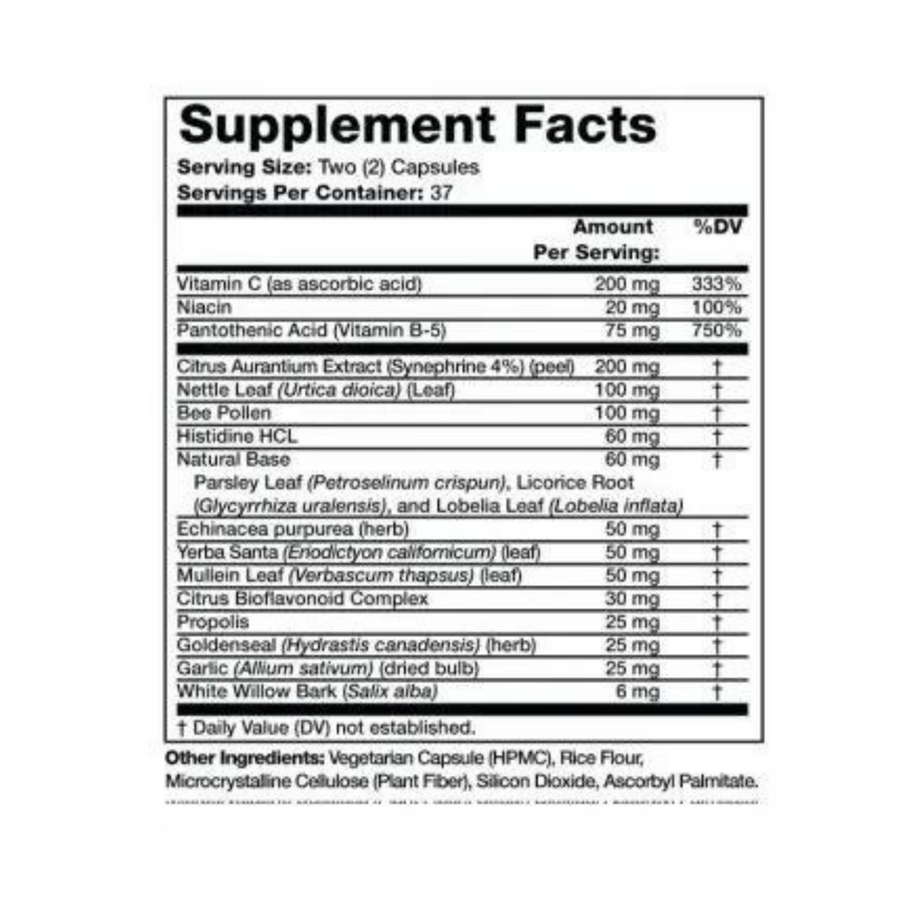 Vitamin C, Niacin, Pantothenic Acid, and Echinacea are healthy immune system boosters that play an important role in the Olympian Labs Breathe EZ formula. These ingredients aid your body’s immune system which forms antibodies you need to battle irritants, pollutants, and toxins with regard to seasonal allergies.