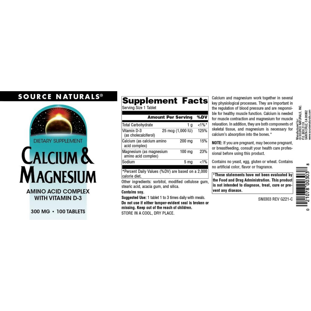 Source Naturals, Calcium & Magnesium, 100 Tablets