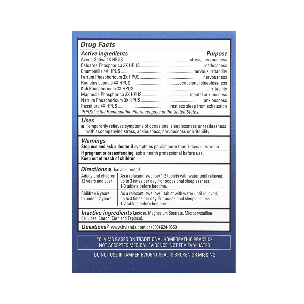 Adults & children 12 years and over: As a relaxant: swallow 1-2 tablets with water as needed three times daily. For occasional sleeplessness: 1-3 tablets 1/2 to 1 hour before retiring. Children 6-12 years as a relaxant: Swallow 1 tablet with water as needed three times daily. For occasional sleeplessness: 1-2 tablets 1/2 to 1 hour before retiring.