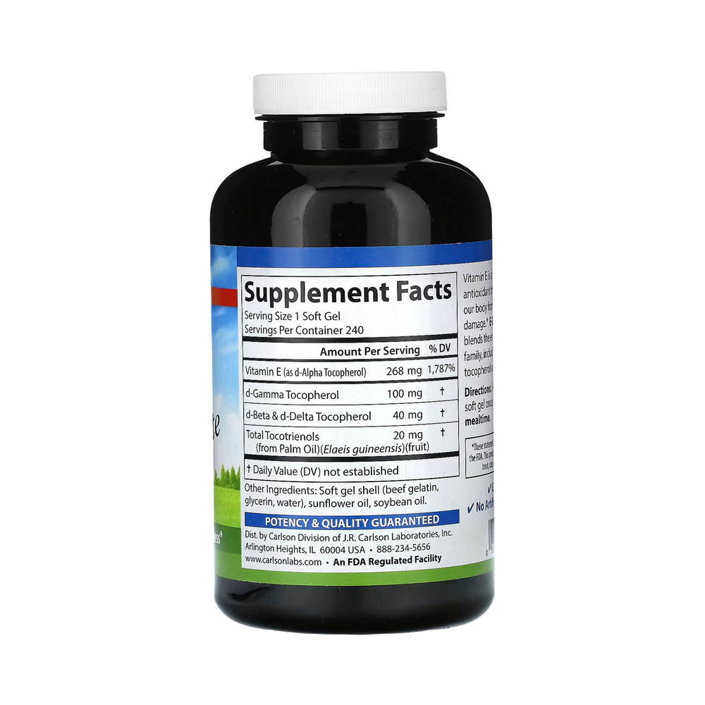 Carlson, E-Gems Elite, Vitamin E with Tocopherols & Tocotrienols, 268 Mg, 240 Soft Gels