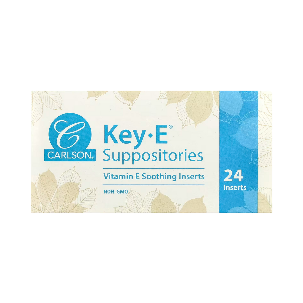 Key-E® Suppositories are soothing, moisturizing inserts that can be used rectally or vaginally. Each suppository supplies 20 mg (30 IU) of vitamin E in a base of coconut and palm oils.