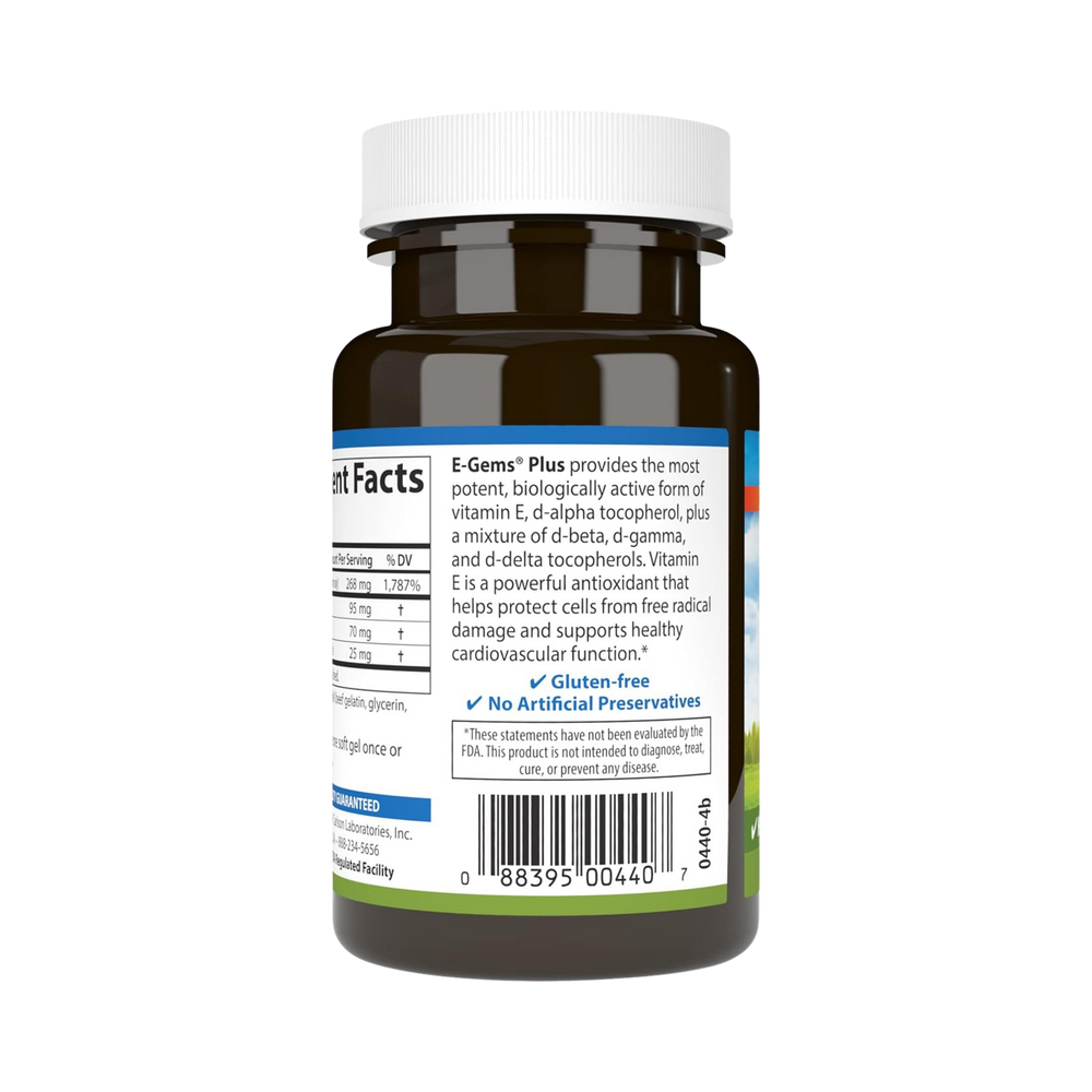 Vitamin E (as d-alpha Tocopherol) Amount Per Serving : 400 IU %DV : 1333 % , Total Mixed Tocopherols Amount Per Serving : 70 mg %DV : * , Other Ingredients: Beef gelatin, glycerin, water.