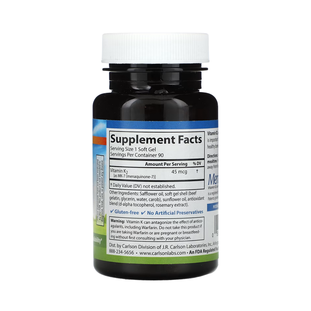 Carlson, Vitamin K2, MK-7, 45 Mcg, 90 Soft Gels