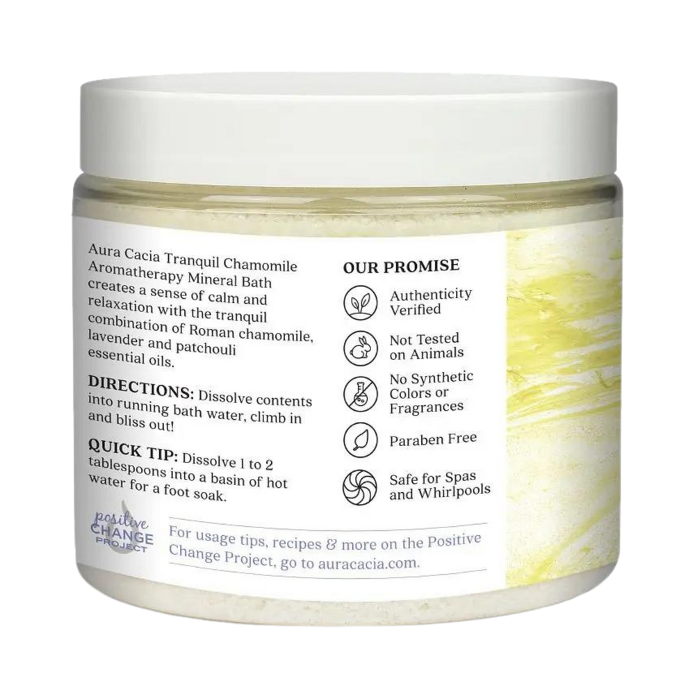 Apart from its various use in medicine, a mild tranquilizer and sleep-inducer, Chamomile has magical power in aromatherapy also. AURA CACIA®, Chamomile Mineral Bath combines the soothing effects of Roman chamomile with fine-textured salts and minerals for a truly luxurious experience. Easily wash away tension and revive your senses.