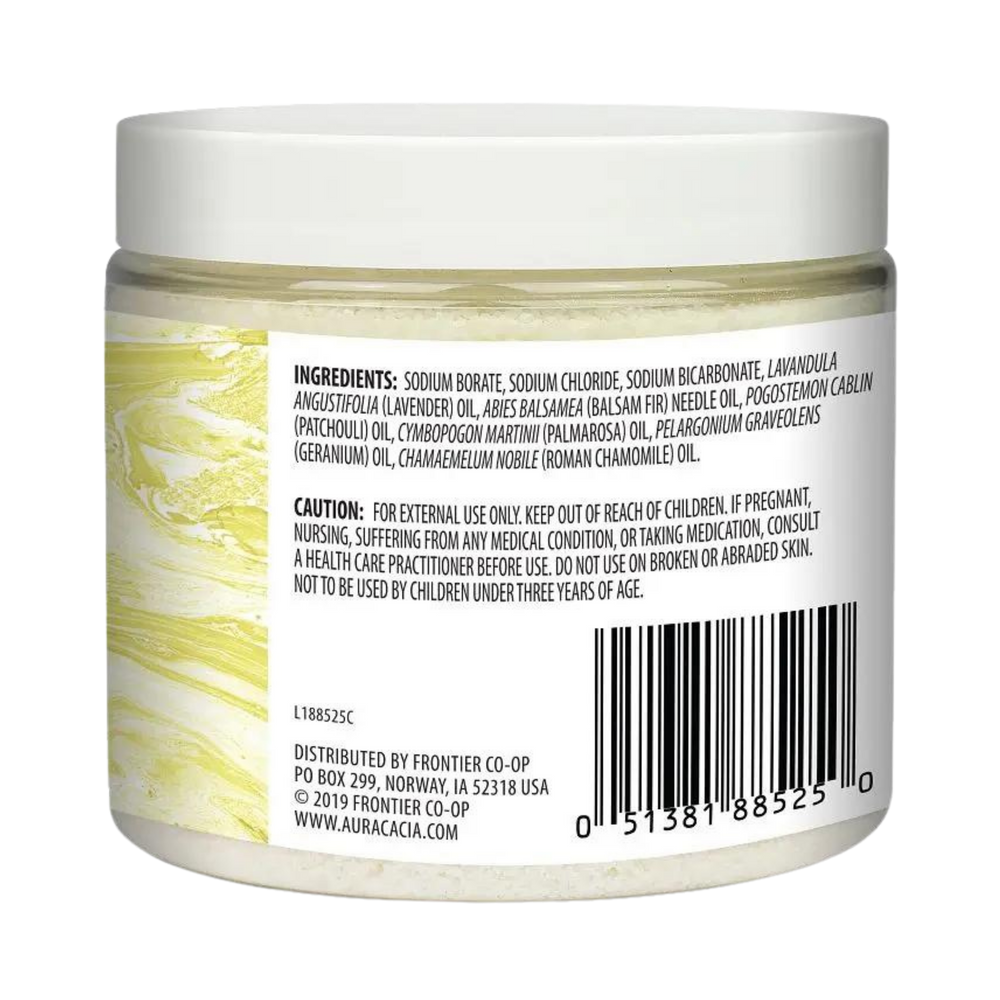 Sodium Borate, Sodium Chloride, Sodium Bicarbonate, Lavandula Angustifolia (Lavender) Oil, Abies Balsamea (Balsam Fir) Needle Oil, Pogostemon Cablin (Patchouli) Oil, Cymbopogon Martinii (Palmarosa) Oil, Pelargonium Graveolens (Geranium) Oil, Chamæmelum Nobile (Roman Chamomile) Oil.