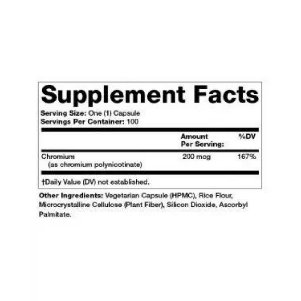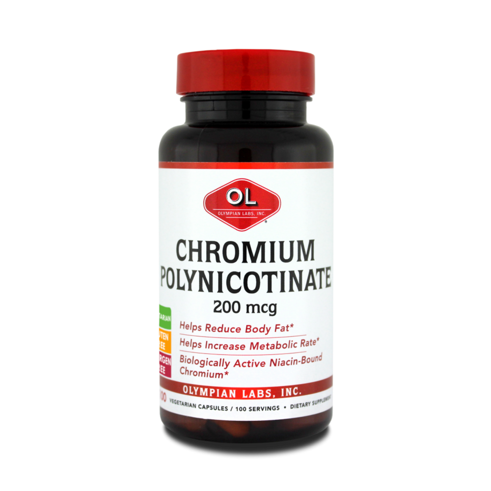 Olympian Labs Chromium Polynicotinate is made with ChromeMate, a patented biologically active oxygen-coordinated niacin-bound chromium complex. It supports the body’s endocrine system which functions by regulating glucose metabolism. Insulin depends on chromium to help move Glucose and fat into the bodys cells where nutrients are either burned for fuel or stored. An independent athlete-based study reported that six weeks of chromium supplementation significantly increased lean body mass and decreased body fat.