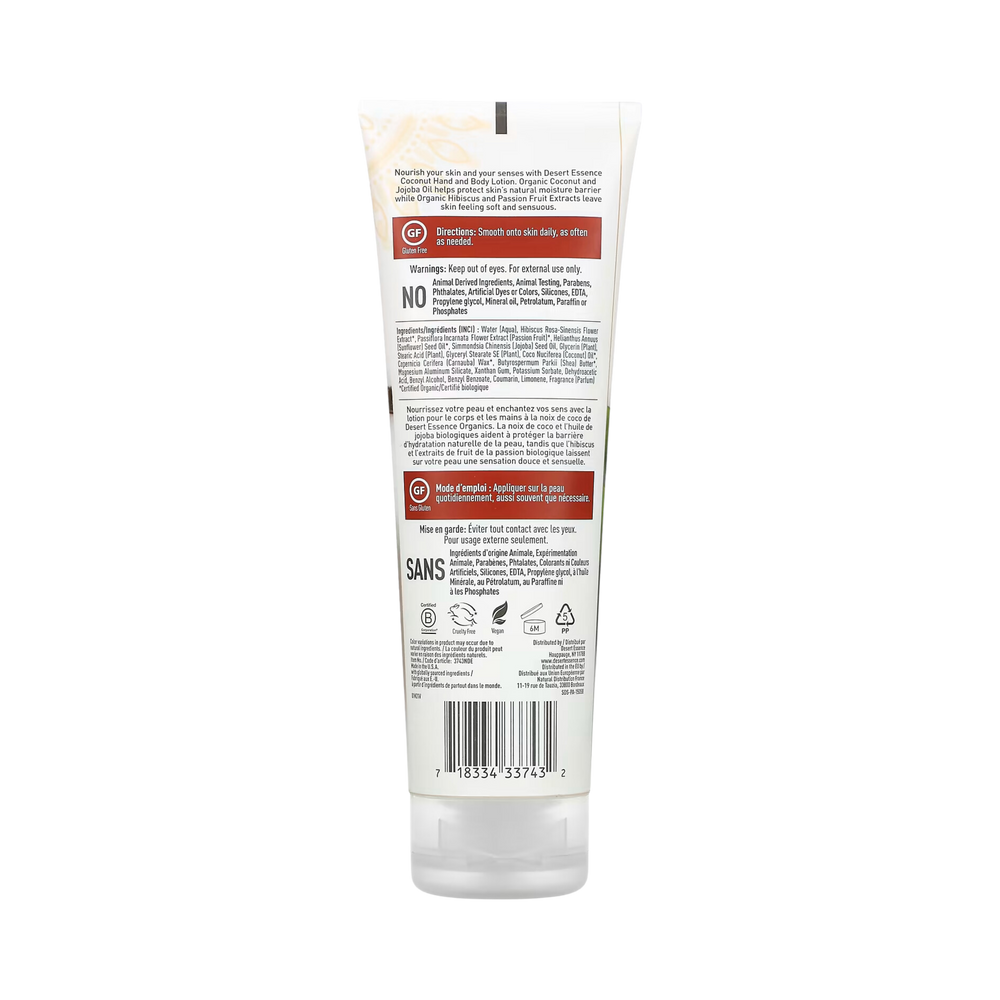 A deeply nourishing treat for dry skin, this coconut oil body lotion softens and delights. Organic Coconut and Jojoba Oil help protect your skin’s natural moisture barrier, Organic Hibiscus and Passion Fruit leave you feeling soft and sensuous, and a light Coconut aroma leaves your skin deliciously scented.