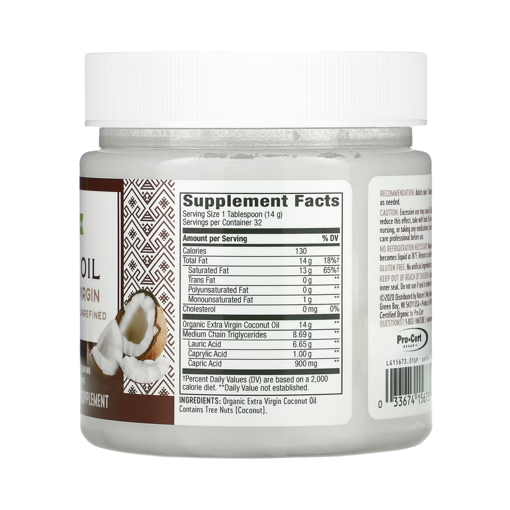This superior quality premium source organic extra virgin coconut oil is considered to be a multitasker as it provides 8.6 g of medium chain triglycerides (MCTs) per serving. So, Nature's Way, Organic Extra Virgin Coconut Oil proves to be a taste enhancer in daily life with soothing flavour and aroma of coconut.