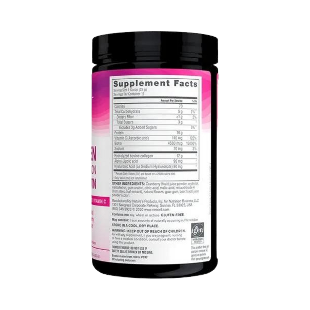 Collagen Type 1 & 3, Hyaluronic Acid, Biotin. This blend of beauty nutrients work together to support healthy hair and nails, and support skin health.