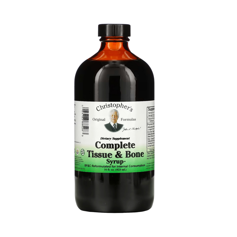 Dr. Christopher's time-tested Complete Tissue & Bone Syrup supports bones, skin, tissue, hair, nails, teeth & gums.