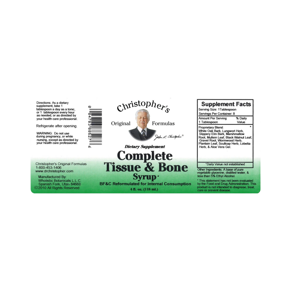 Dr. Christopher's time-tested Complete Tissue & Bone Syrup supports bones, skin, tissue, hair, nails, teeth & gums.
