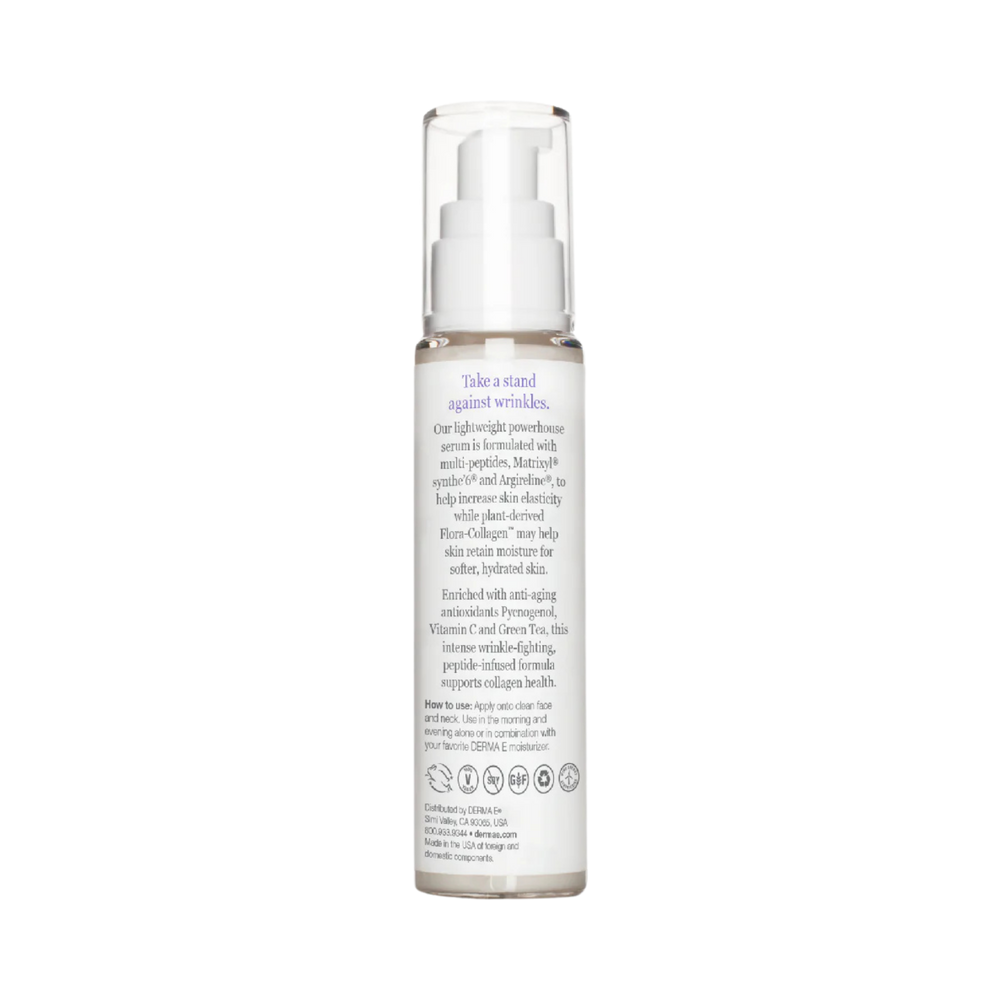 Enhance your skincare routine with DERMA E's Advanced Peptides and Flora-Collagen™ Serum. This nourishing, double-action treatment formula addresses the appearance of deep lines and wrinkles, promoting smoother and younger-looking skin. Clinical trials show that 100% of users experienced improved skin elasticity.
