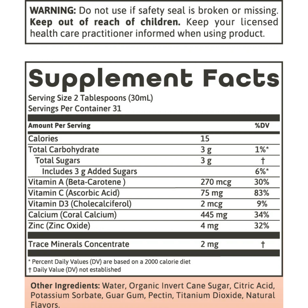 Serving Size 2 tbsp (30 ml) of Coral Calcium Complex. May be mixed with water, seltzer, juice or a beverage of your choice. Take with at least 250 ml (8 oz) of liquid.