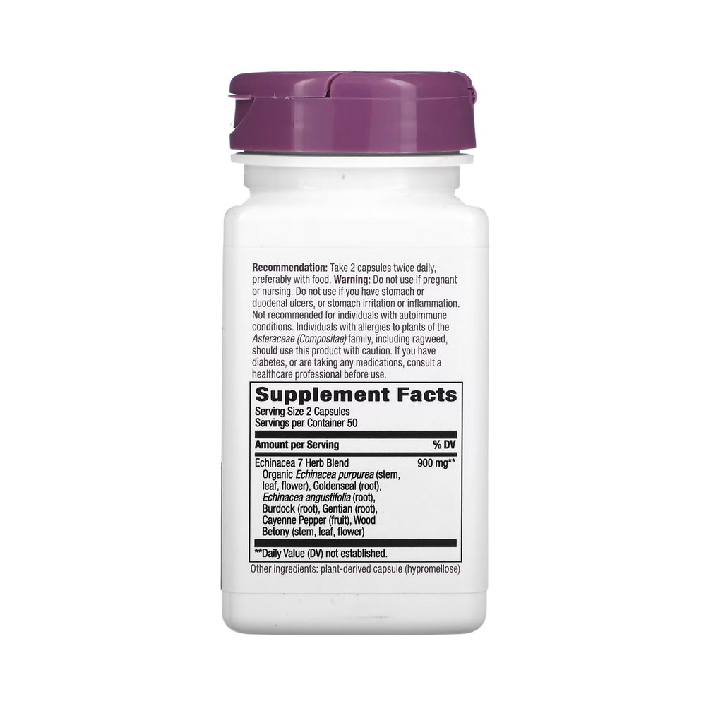 | Echinacea 7 Herb Blend Organic Echinacea purpurea (stem, leaf, flower), Goldenseal (root), Echinacea angustifolia (root), Burdock (root), Gentian (root), Cayenne Pepper (fruit), Wood Betony (stem, leaf, flower) |