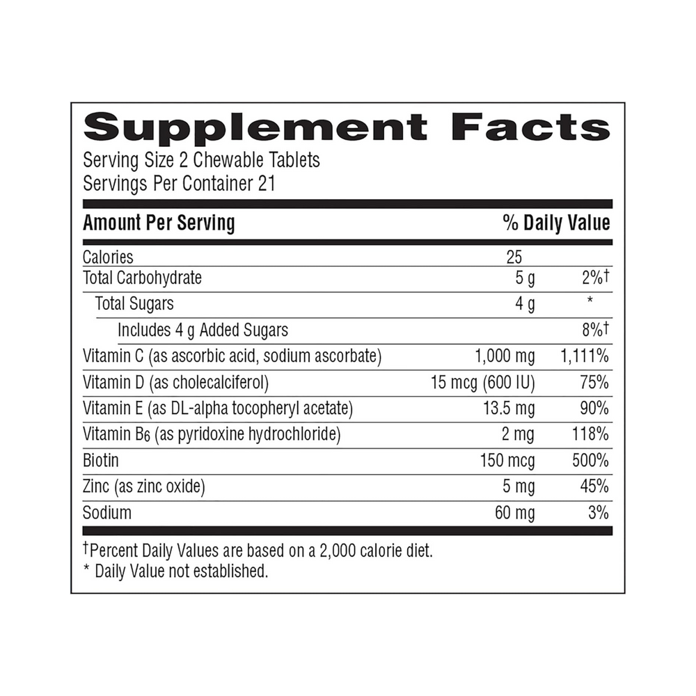 Directions: Ages 14 and up, take two (2) chewable tablets daily. Do not exceed suggested use. Not formulated for use in children. As with any supplement, if you are pregnant, nursing or taking mediation, consult your doctor before use.