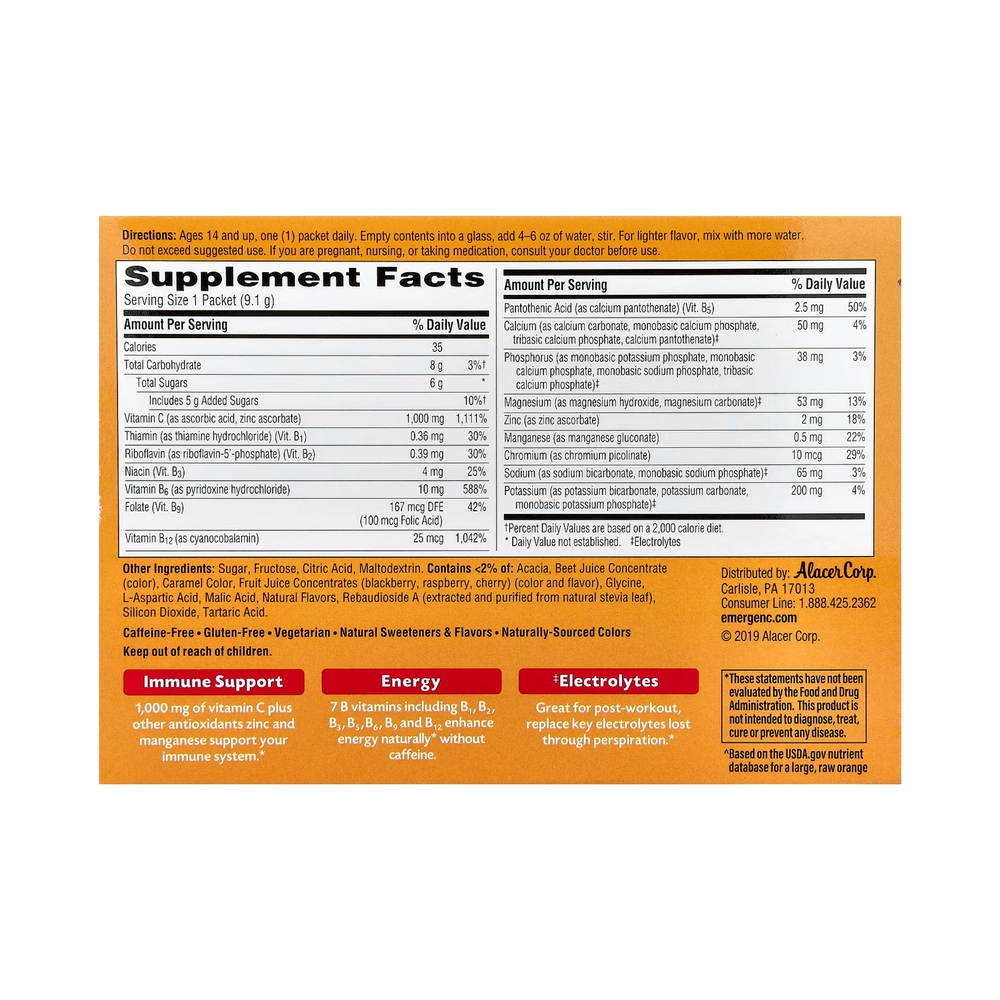 Ages 14 and up, one (1) packet daily. Empty contents into a glass, add 4-6 oz of water, stir. For lighter flavor, mix with more water.