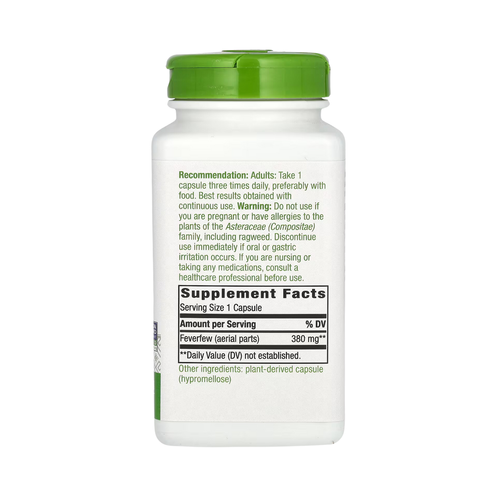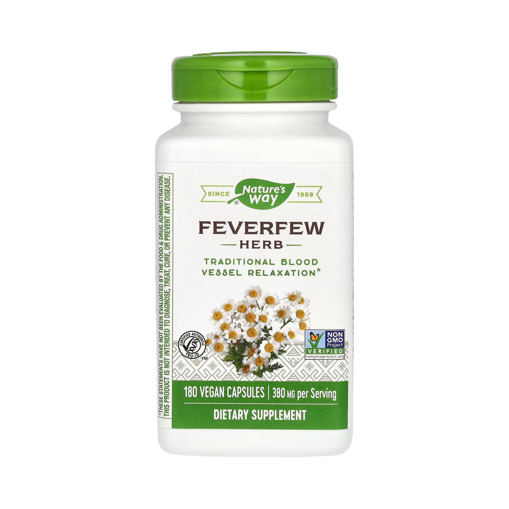 These widely used vegan capsules, Feverfew, is a flowering plant used to support blood vessel relaxation. It’s also known as “wild chamomile” and “featherfew,” due to its feathery leaves. Feverfew has been used for thousands of years. It is dairy free and gluten free capsules.