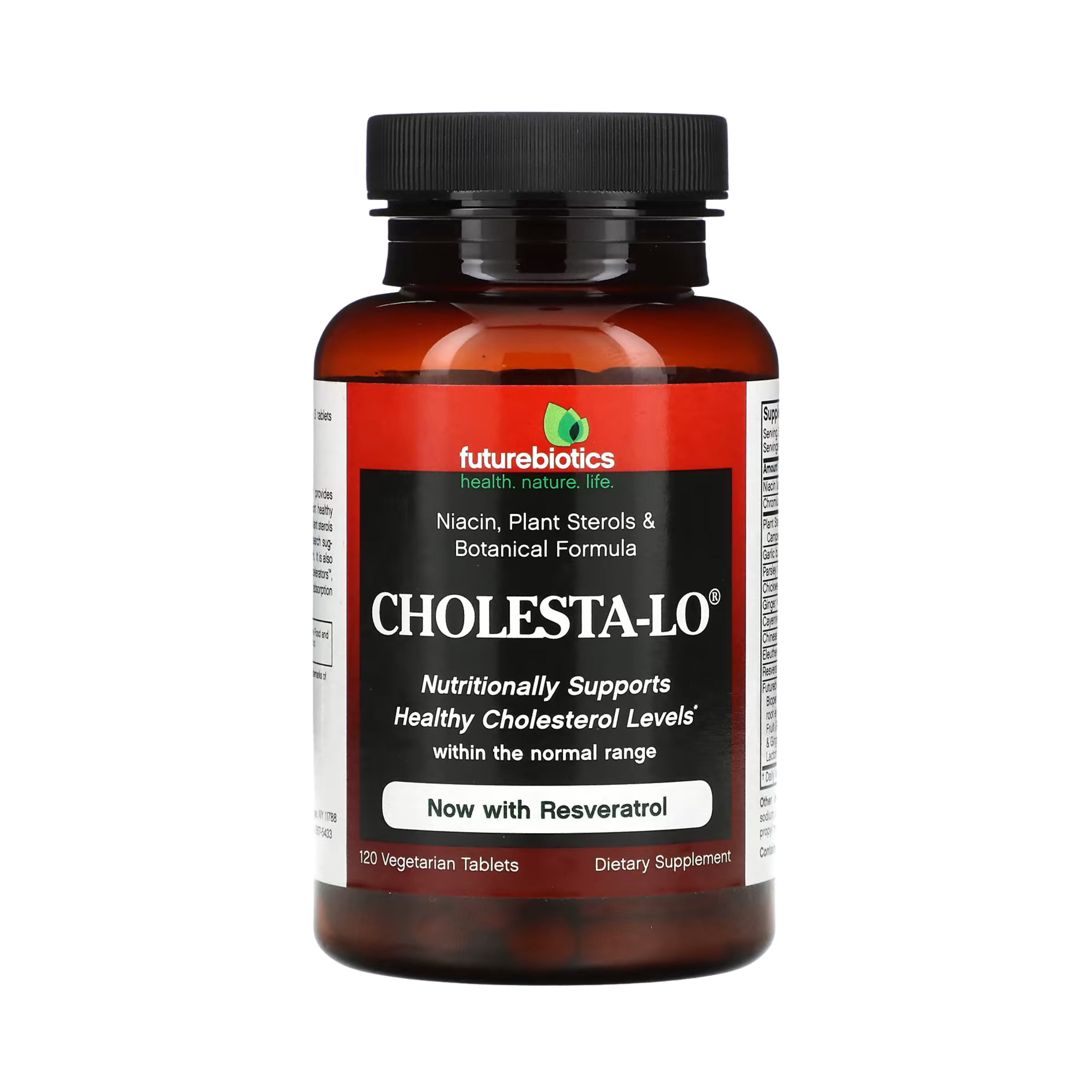 Cholesta-Lo® is comprehensive formula that provides nutrients and other key factors to nutritionally support healthy cholesterol levels within the normal range. Along with plant sterols and flush-free niacin, it includes Resveratrol, which research suggests may play a role in supporting cardiovascular health. It is also potency enhanced with Futurebiotics® exclusive BioAccelerators™ including Lactospore® probiotics, for improved nutrient absorption and utilization.