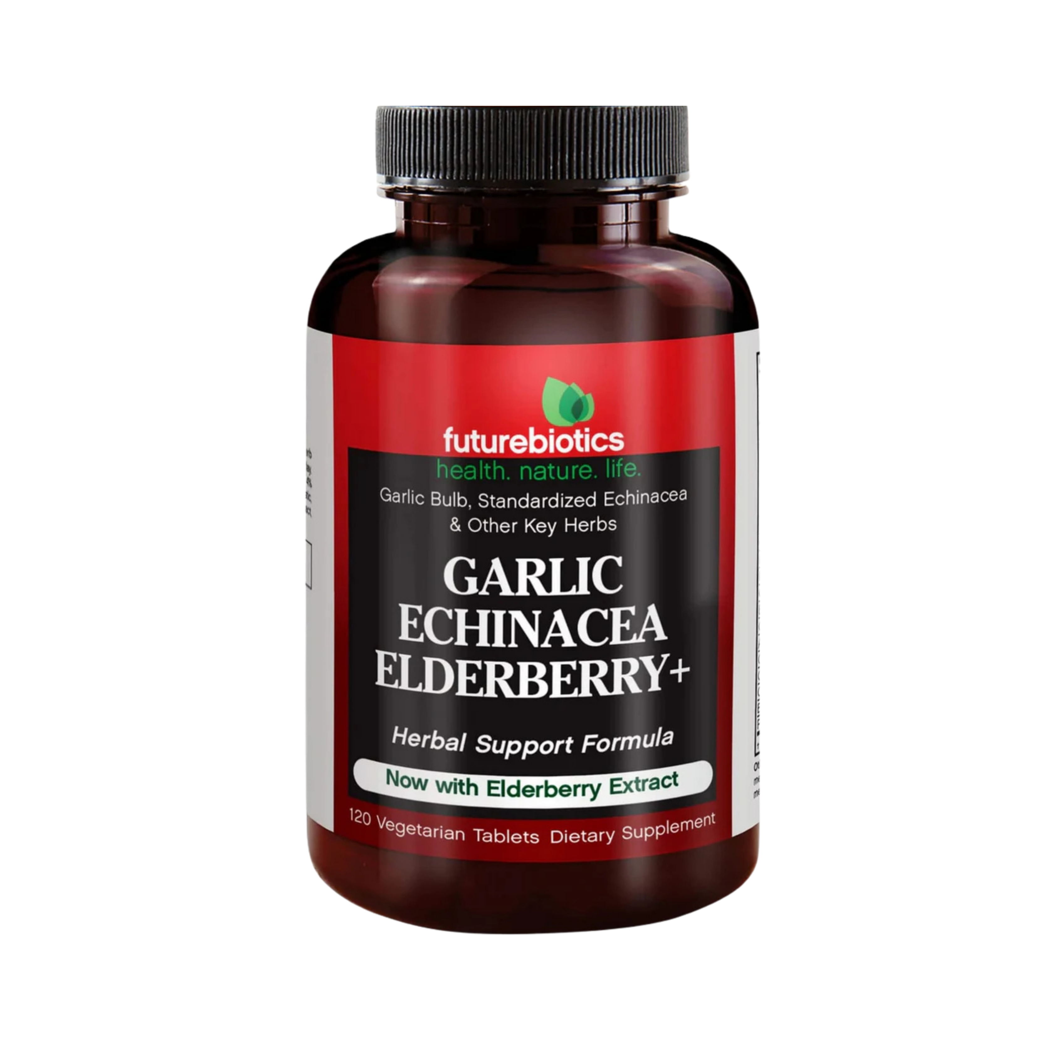 Futurebiotics Garlic, Echinacea & Elderberry+ is an immune support supplement that has been specially formulated with well-known immune-boosting herbs. Garlic, Echinacea and Elderberry have all been used for centuries as a natural remedy and protection from immune weaknesses. Garlic has been historically used as a traditional folk remedy, while Echinacea has been a long-trusted herb used to boost your body's immune system. Elderberry has been known to support the body’s natural defenses. This powerful combination has been shown to provide important immune support and is ideal for seasonal changes. These powerful ingredients can be hard to obtain enough of through our regular diet, making our immune-boosting supplement ideal for those with busy lives. Take two tablets up to two times a day, particularly during seasonal changes to support a strong immune system.