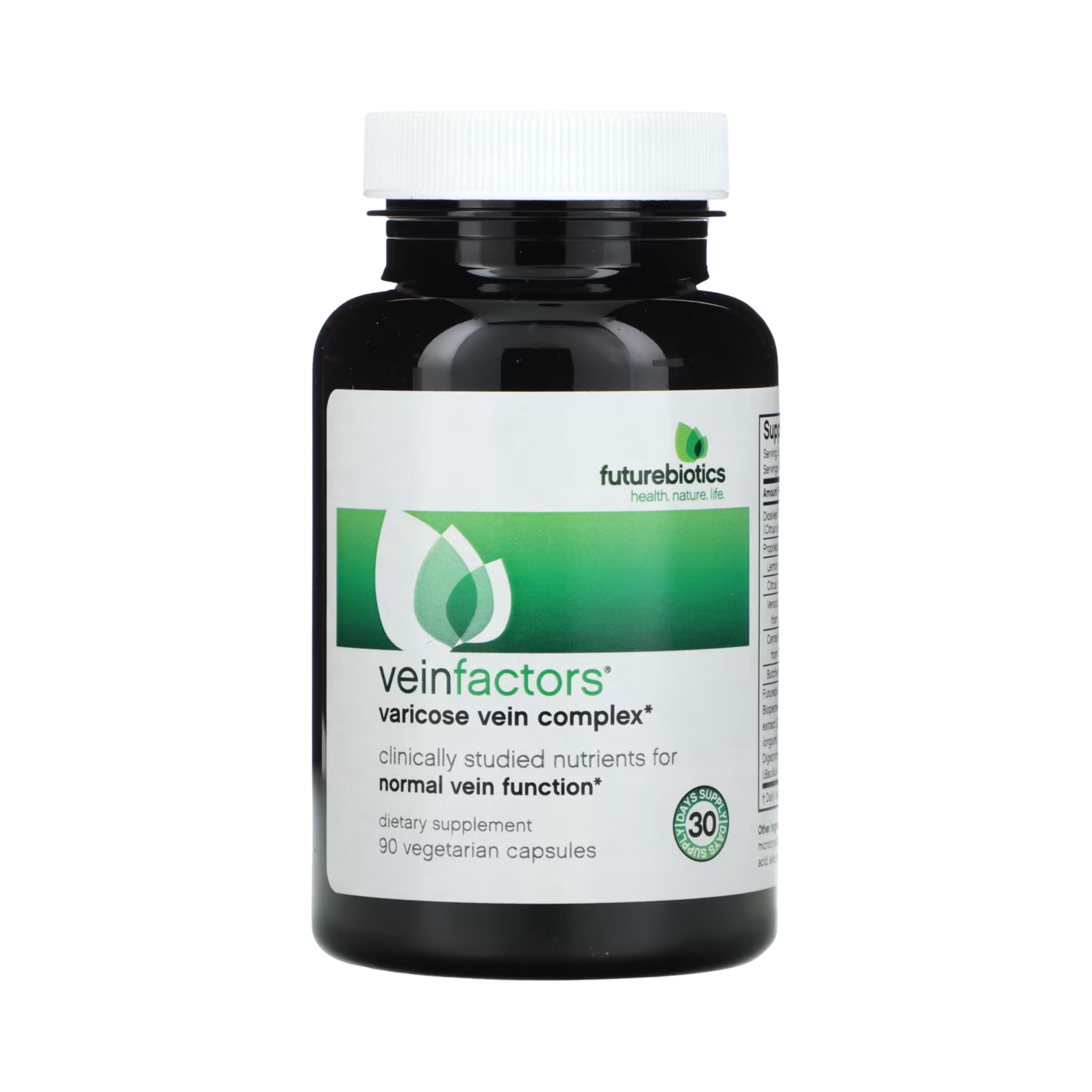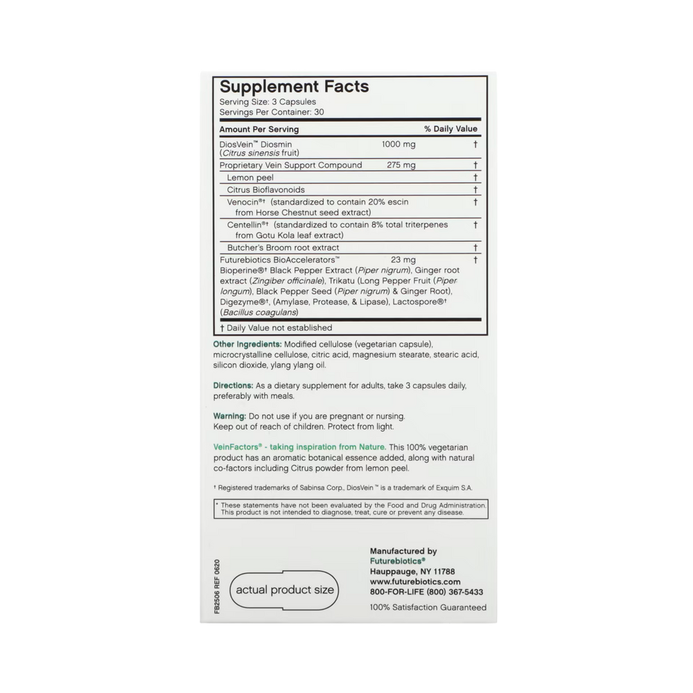 VeinFactors® is potency-enhanced with Futurebiotics BioAccelerators™. Clinically-studied Bioperine® (Piper nigrum extract) improves nutrient bioavailability, while our proprietary natural compound of Ginger extract, Trikatu, super-potent Digezyme® and Lactospore® boosts digestion and absorption.