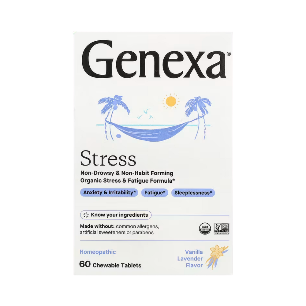 Genexa, Stress, Organic Stress & Fatigue Formula, Vanilla & Lavender, 60 Chewable Tablets