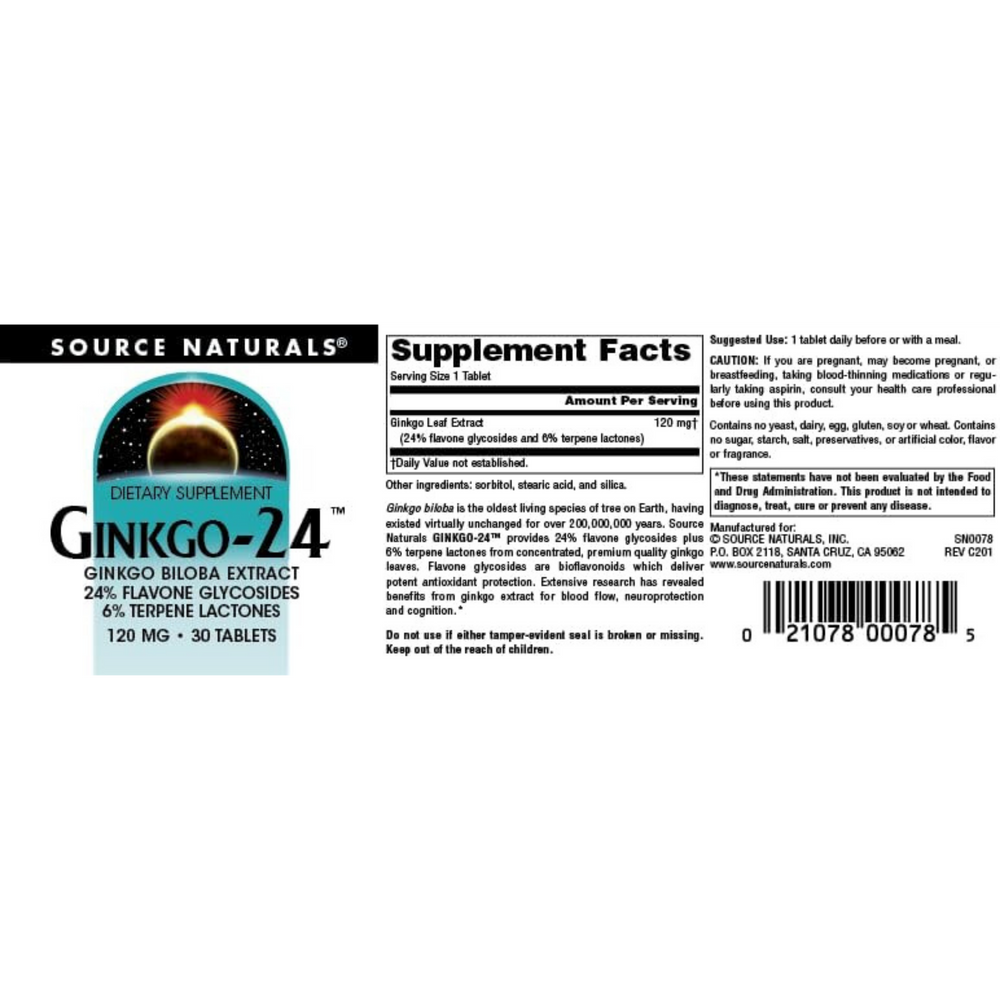 Source Naturals, Ginkgo-24, 120 Mg, 30 Tablets