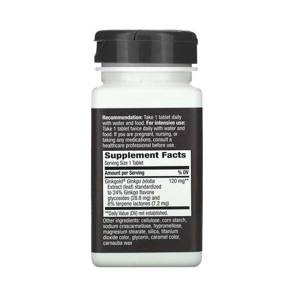 | Ginkgold® Ginkgo biloba extract (leaf) standardized to 24% Ginkgo flavone glycosides (28.8mg) and 6% terpene lactones (7.2 mg) | 120 mg | ** |