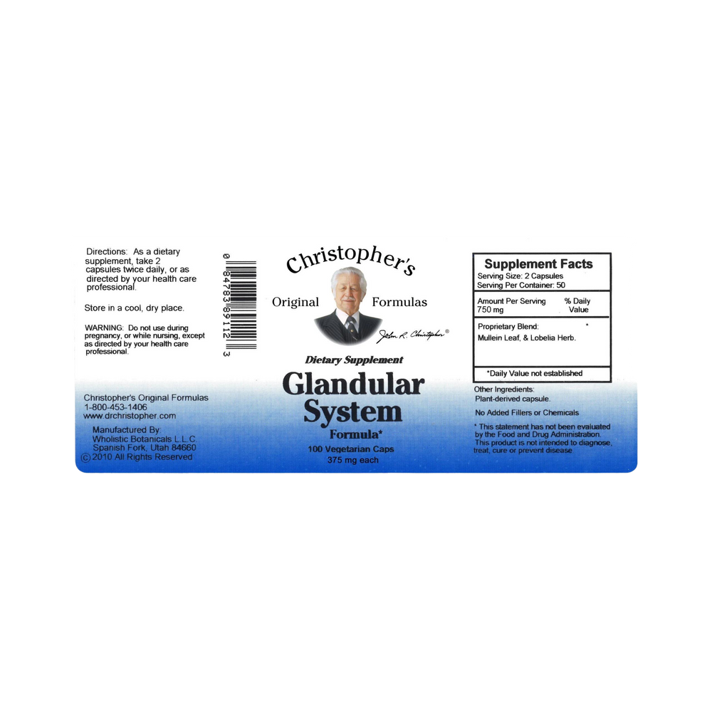Dr. Christopher's time tested Glandular System formula supports the body's glandular functions.