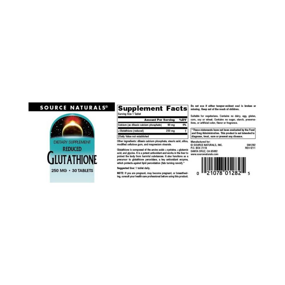 Source Naturals, Glutathione, Reduced, 250 Mg, 30 Tablets