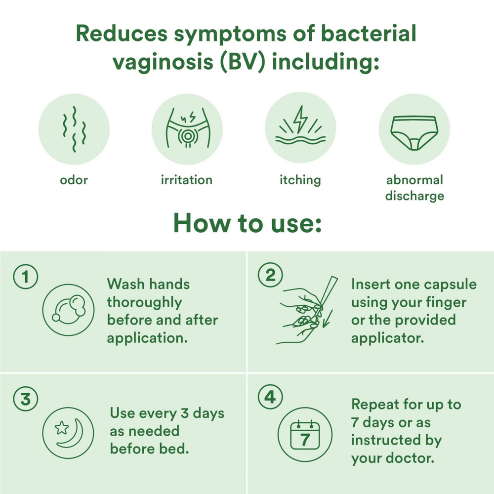 Helps relieve symptoms of bacterial vaginosis like odor, itch, & dryness.