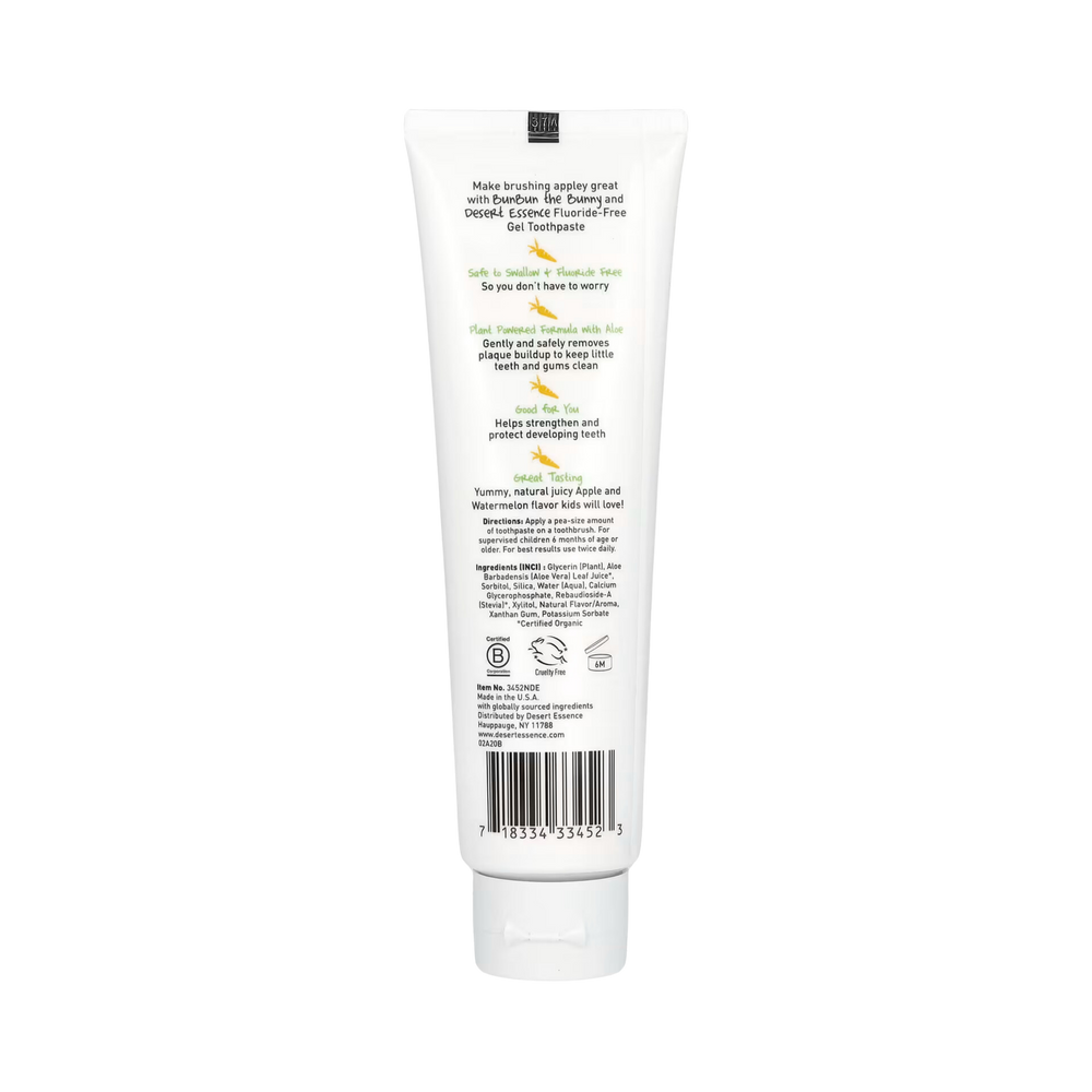 Plant-powered kids watermelon toothpaste gel made safe to swallow and fluoride-free just for kids. Helps strengthen and protect developing teeth with tasty natural Green Apple and Watermelon fruit flavors kids will love!