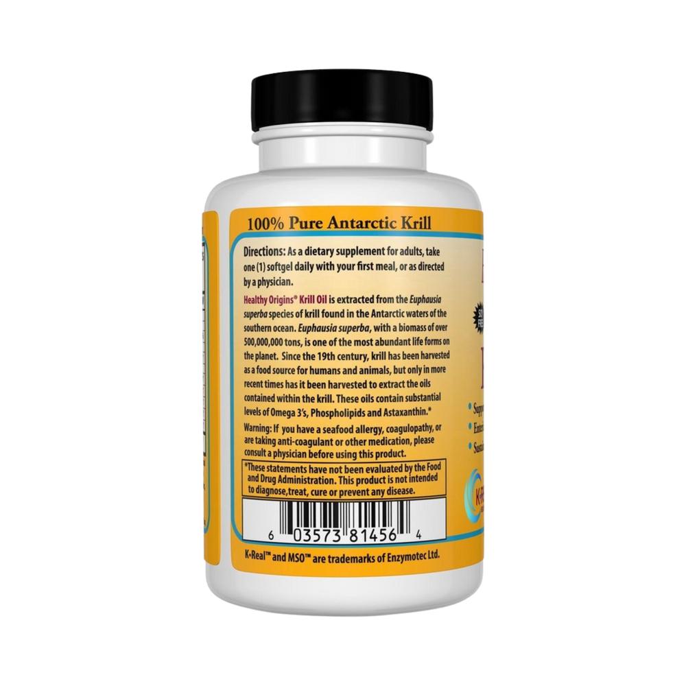 Healthy Origins® Krill Oil is extracted from the Euphausia superba species of Krill found in the Antarctic waters of the southern ocean. Euphausia superba, with a biomass of over 500,000,000 tons, is one of the most abundant life forms on the planet. Since the 19th century, krill has been harvested as a food source for humans and animals, but only in more recent times has it been harvested to extract the oils contained with the krill. These oils contain substantial levels of Omega 3’s, Phospholipids and Astaxanthin.