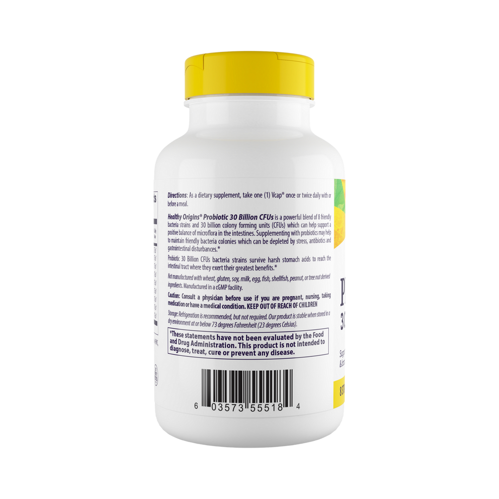Healthy Origins® Probiotic 30 Billion CFUs is a powerful blend of 8 friendly bacteria strains and 30 billion colony forming units (CFUs) which can help support a positive balance of microflora in the intestines. Supplementing with probiotics may help maintain friendly bacteria colonies which can be depleted by stress, antibiotics, and gastrointestinal disturbances. Healthy Origins® Probiotic 30 Billion CFU’s bacteria strains survive harsh stomach acids to reach the intestinal tract where they exert their greatest benefits. Probiotic 30 Billion CFU’s is stable while refrigerated or stored at room temperature (~70º).