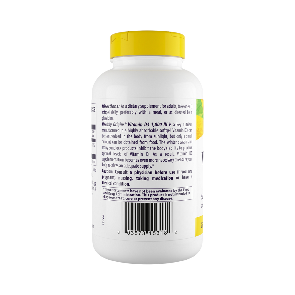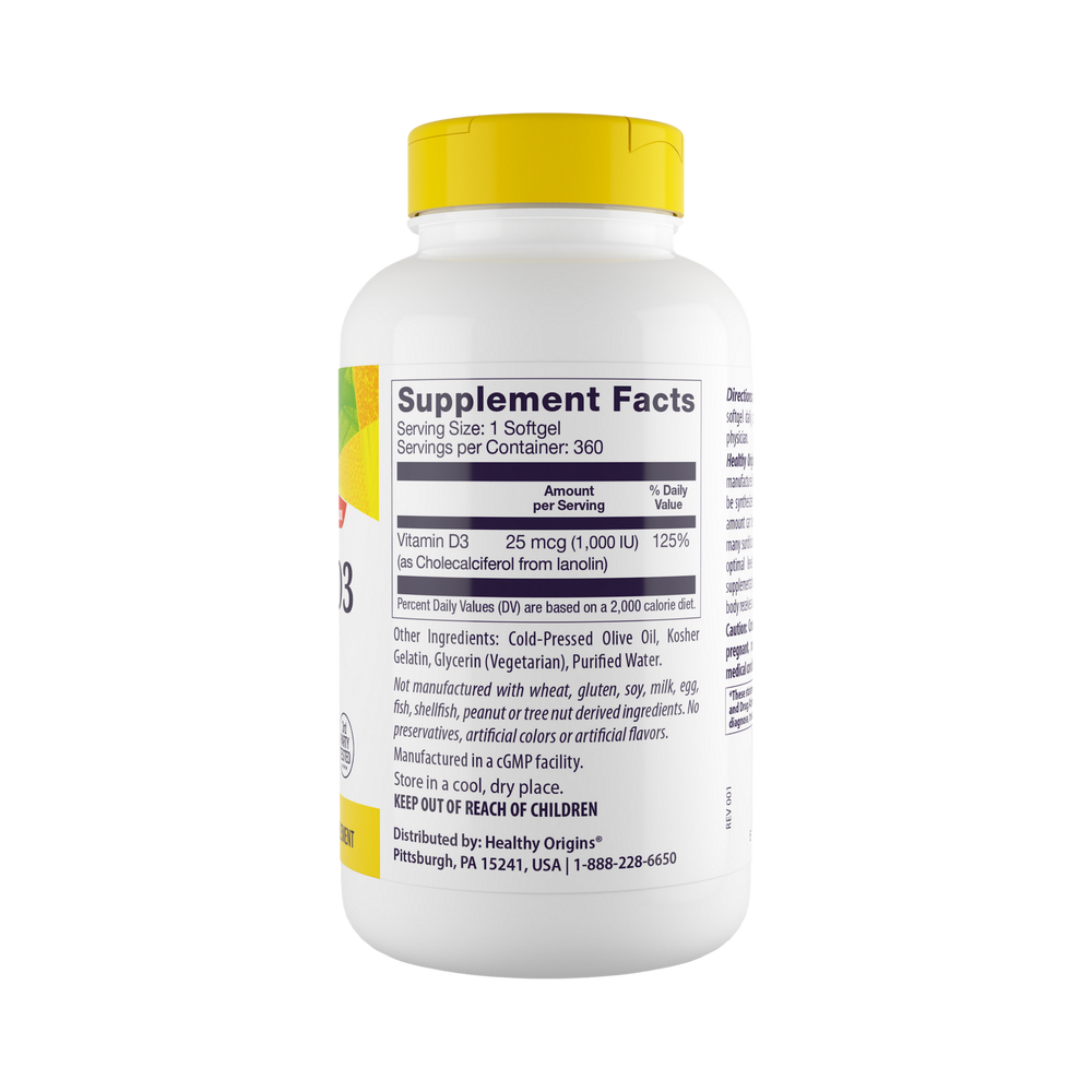 Healthy Origins, Vitamin DЗ Gels, 1000 IU, Lanolin, 360 Softgels
