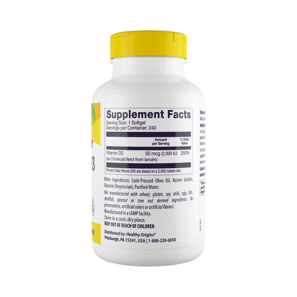 Healthy Origins, Vitamin DЗ Gels, 2000 IU, Lanolin, 240 Softgels