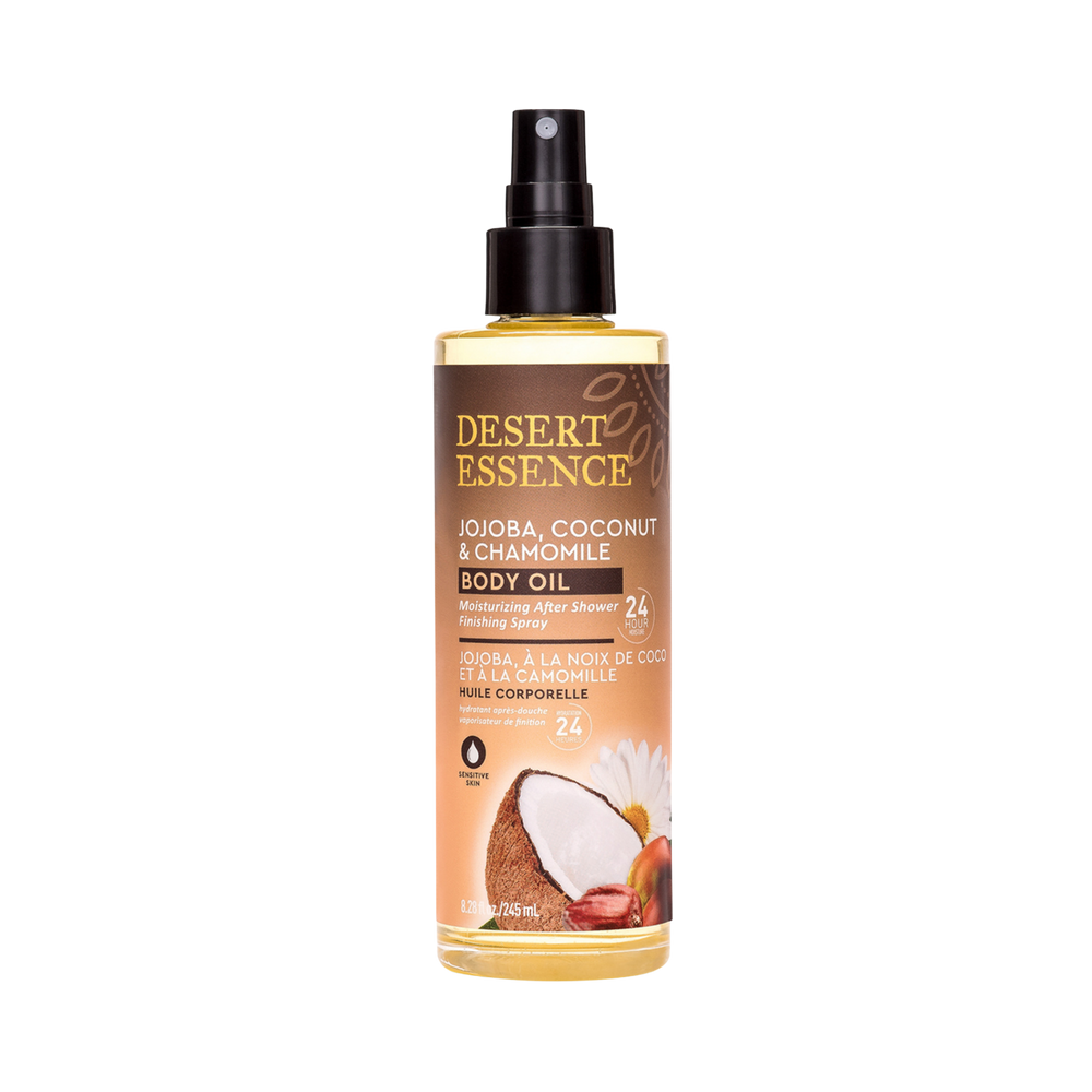 Soothing after-shower body oil finishing spray formulated with Jojoba Oil, Coconut Oil and Chamomile. Perfect for sensitive skin, this illuminating blend absorbs quickly and seals in moisture for 24 hours.
