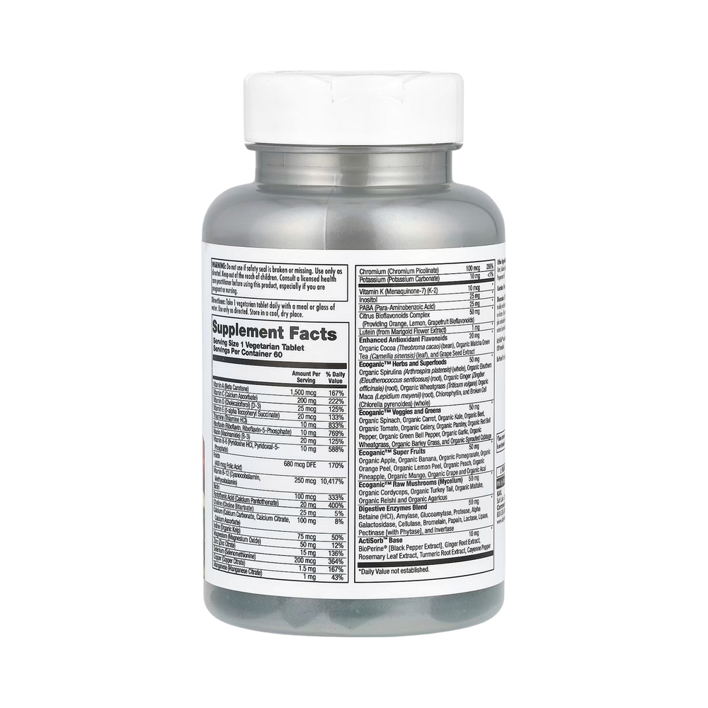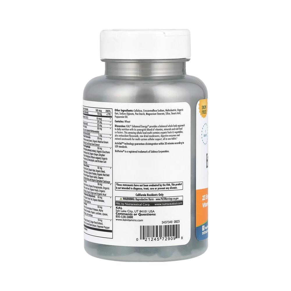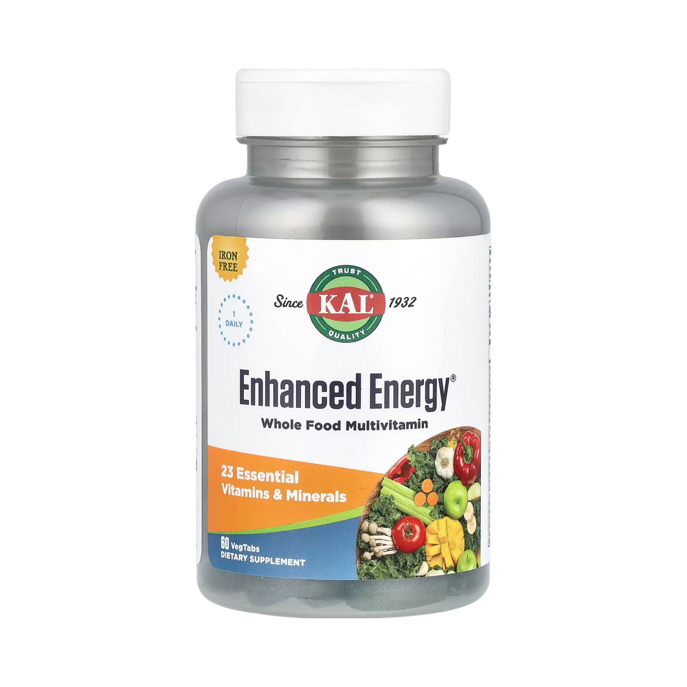 Discussion: KAL® Enhanced Energy® provides a balanced whole body approach to daily nutrition with its synergistic blend of Vitamins, Minerals and Real Food co-factors. This amazing Whole Food Multi contains Organic Fruits & Vegetables, plus Energizing Green Foods, Antioxidant Flavonoids, Immune-Enhancing Row Dried Mushrooms, Digestive Enzymes and Natural Carotenoids for multi-system cellular support, all in one tablet.