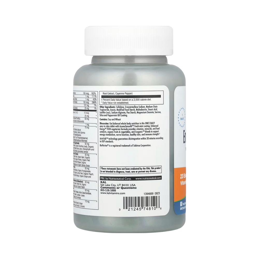 KAL, Enhanced Energy, Teen, Memory & Concentration Blend, 60 Vegetarian Tablets