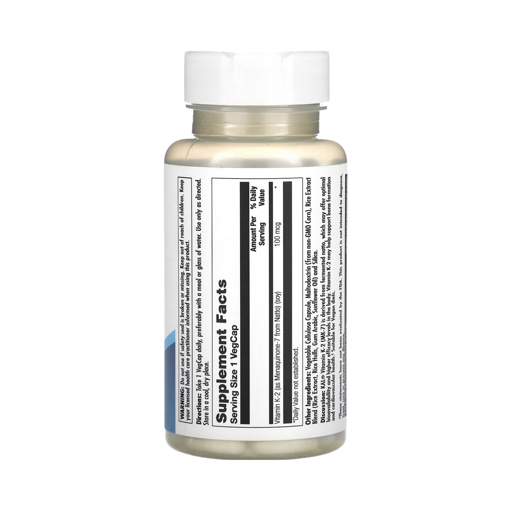 Discussion: KAL® Vitamin K-2 (MK-7) is derived from fermented natto, which may offer optimal bioavailability and higher efficacy levels in the body. Vitamin K-2 may help support bone formation and cardiovascular health.