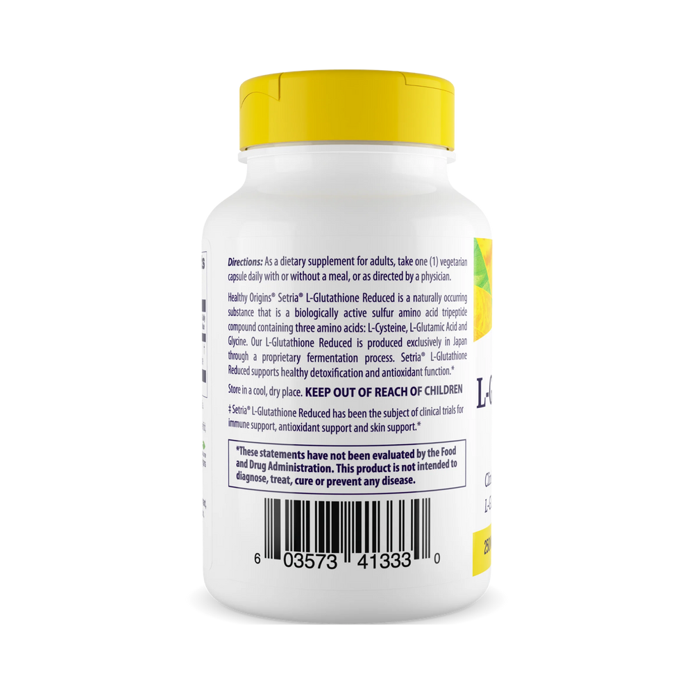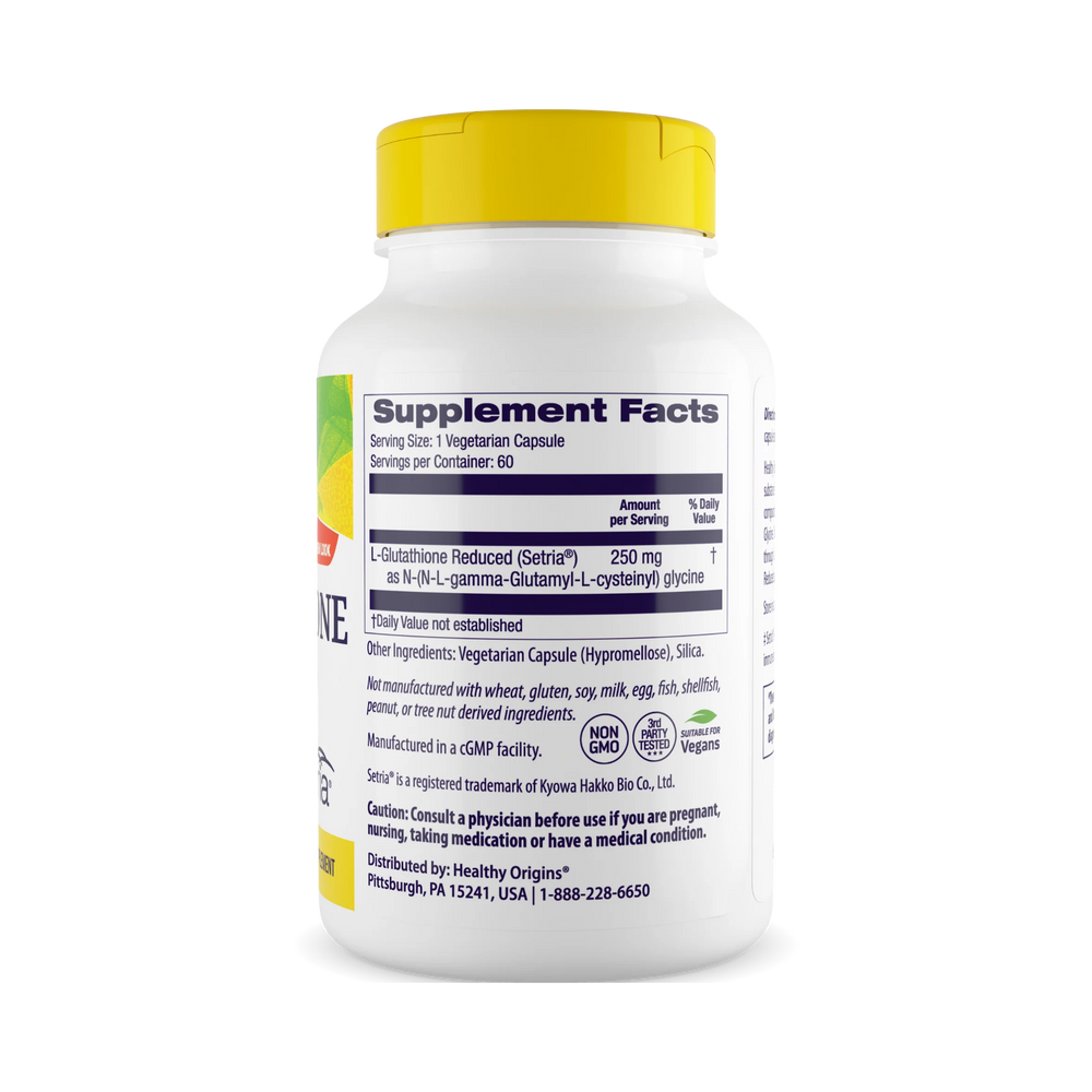 Healthy Origins® Setria® L-Glutathione Reduced is a naturally derived substance that is a biologically active sulfur amino acid tripeptide compound containing three amino acids: L-Cystene, L-Glutamic Acid and Glycine. Our Setria® brand of L-Glutathione Reduced is a trademark of Kyowa Hakko Kogyo Co., Ltd., and is produced exclusively in Japan using a proprietary fermentation process and is pharmaceutical grade, the highest quality available.*