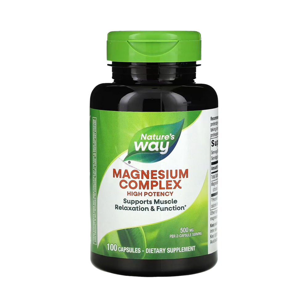 This potent mineral has plenty of qualities, one of which is to support muscle function. Nature's Way, Magnesium Complex contains 500 mg magnesium per serving and is certified potent. Magnesium found in a variety of foods, including leafy greens and whole grains.