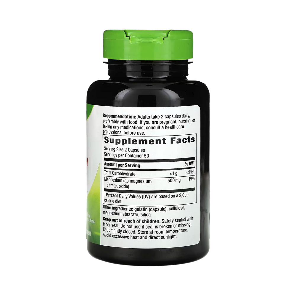 | Magnesium (as magnesium citrate and oxide) | 500 mg | 119% |