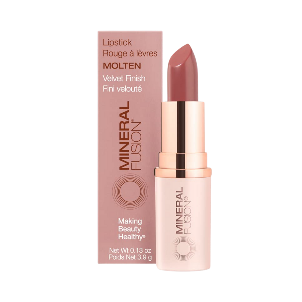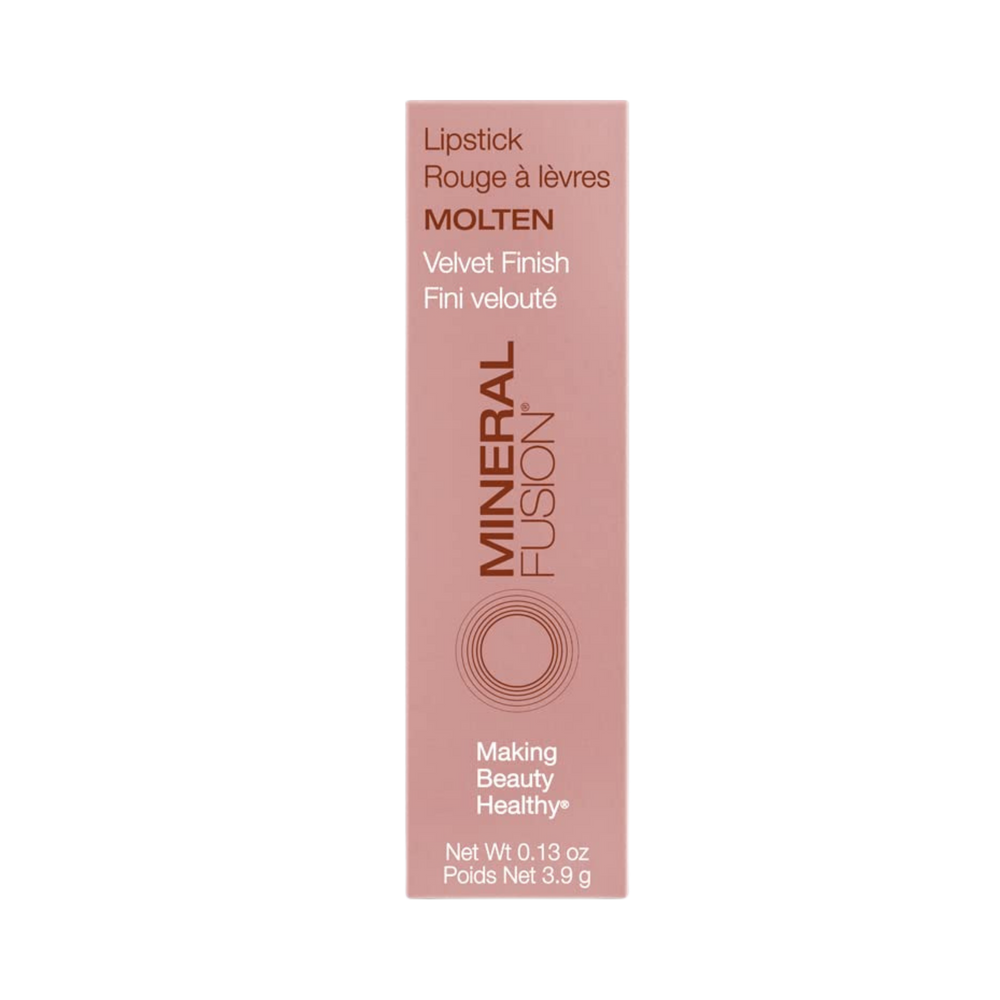 Mineral Fusion lipstick molten, shea butter and jojoba Seed Oil hydrate and condition, keeping lips soft and supple. Pomegranate, red tea, and White tea, plus vitamins C and E, protect delicate lips against free radical damage. Resists smudging and feathering for a perfectly enhanced pout. Luxurious formula smoothes on lips, delivering rich color with staying power.