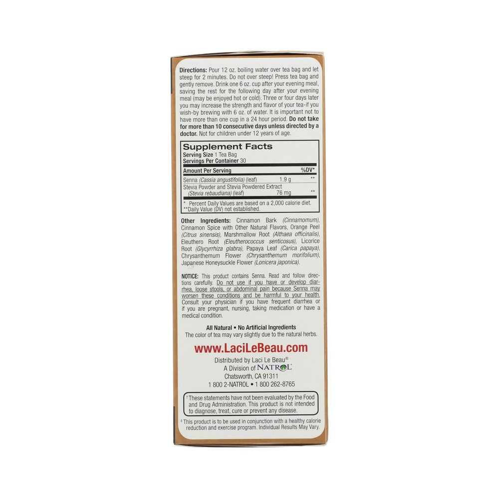 Senna, Stevia Powder and Stevia Powdered Extract, Cinnamon Bark, Cinnamon Spice with Other Natural Flavors, Orange Peel, Marshmallow Root, Eleuthero Root, Licorice Root, Papaya Leaf, Chrysanthemum Flower, Japanese Honeysuckle Flower.
